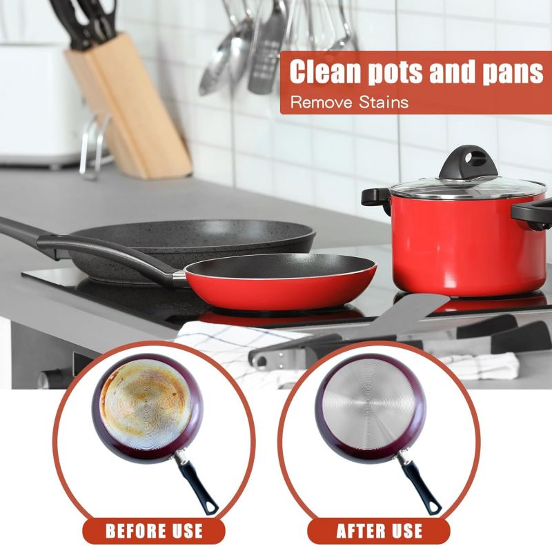 Per saperne di piùPulizia della cucina: può essere utilizzato per pulire vari utensili da cucina e superfici, come pentole, padelle, ripiani e lavelli. Il lato abrasivo può rimuovere il grasso testardo e i residui di cibo, mentre il lato morbido può essere usato per pulire e asciugare le superfici.